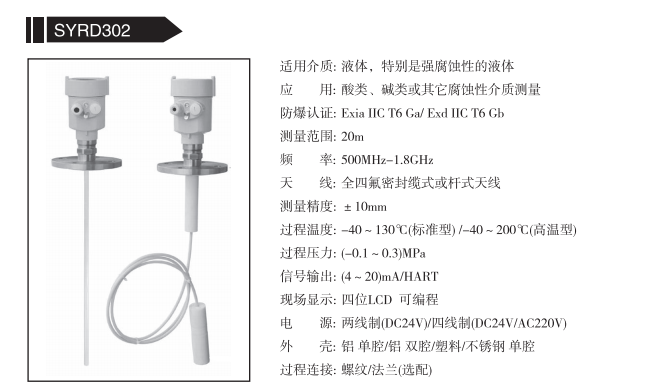 SYRD300系列导波雷达物位仪 价格: 编号:SYRD302